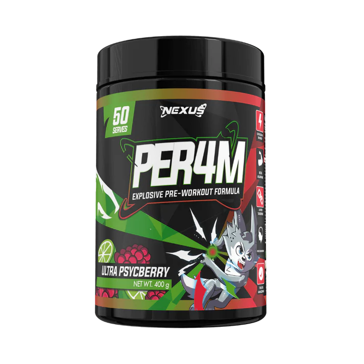 Nexus bring us their NEW explosive pre-workout PER4M and are aiming to set a new industry benchmark! This all-in-one high stimulant formula covers all basis providing you with explosive energy, skin splitting pumps and enhanced focus & mental performance.